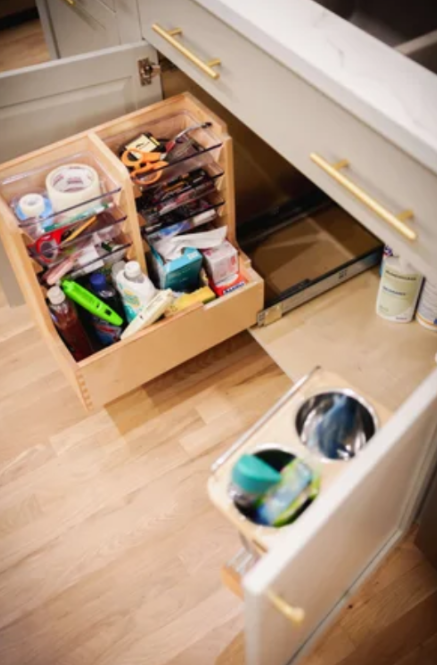 Imagine pull-out racks for spices, drawers deep enough to store pans and pots, vertical tray storage, as well as a concealed charging station. We are Spring Hill Design & Woodcraft, and we are experts in designing and building custom cabinet remodeling ideas that blend function with elegance effortlessly.